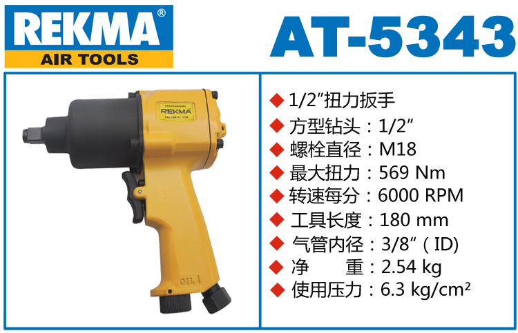銳克馬REKMA AT-5343氣動(dòng)沖擊扳手特點(diǎn):(塑鋼外殼,強(qiáng)度更高不變形,提高耐用度)