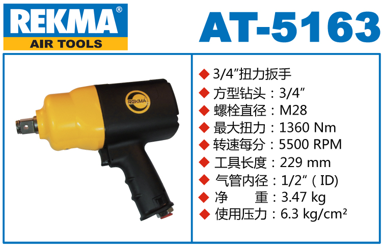 銳克馬REKMA AT-5163中型氣動扳手特點:(重力壓鑄外殼,強度更高不變形,提高耐用度)